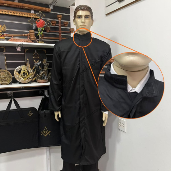 Confeccionado em microfibra, com botão frontal e gola com acabamento em crepe, oferecendo conforto e apresentação adequada às sessões maçônicas.