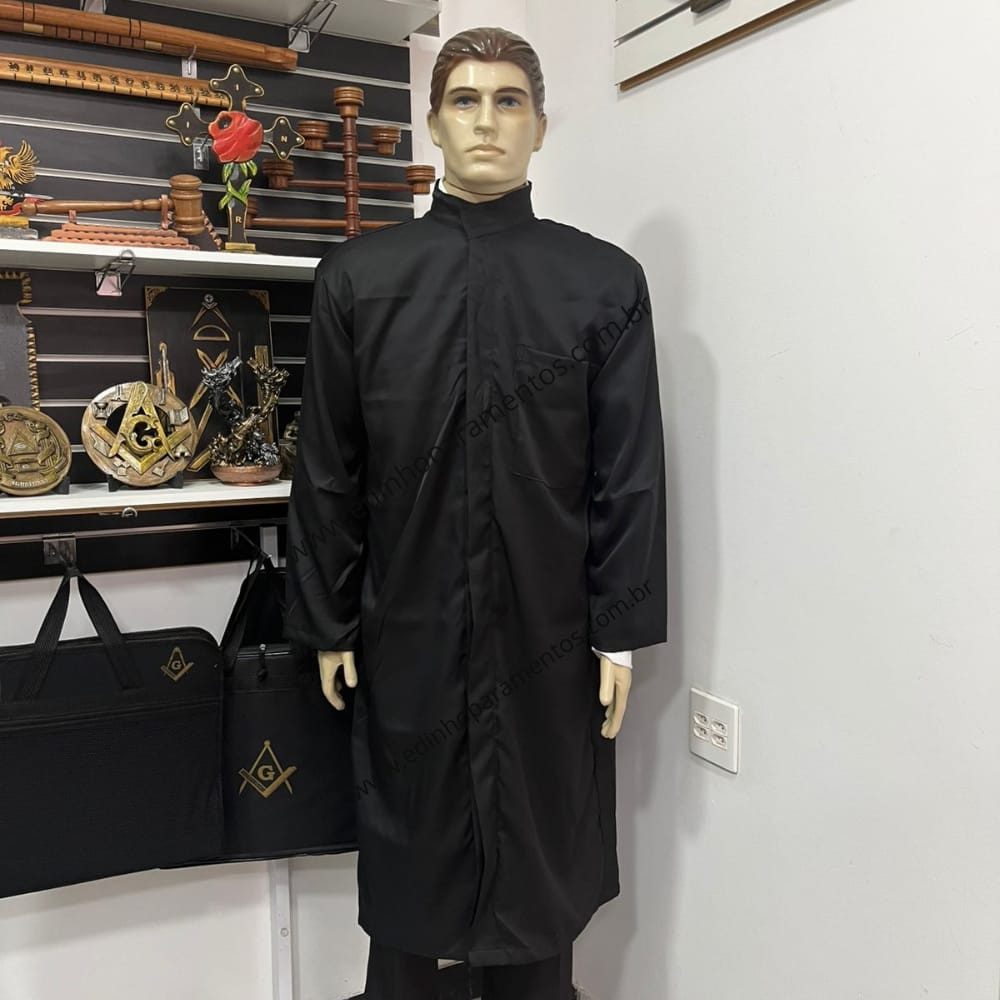Confeccionado em microfibra, com botão frontal e gola com acabamento em crepe, oferecendo conforto e apresentação adequada às sessões maçônicas.