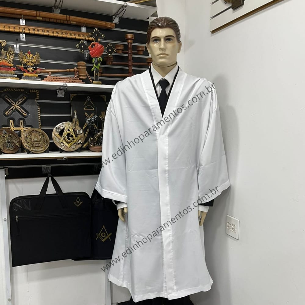Sobrepeliz Maçônica, veste ritual utilizada em cerimônias e trabalhos de caráter solene, confeccionada em oxford com fechamento em velcro, proporcionando leveza, bom caimento e conforto durante o uso.