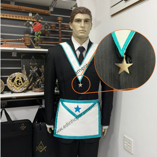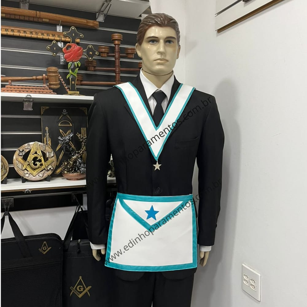 Avental confeccionado conforme os preceitos ritualísticos do Grau de Companheiro Rito Adonhiramita - GL/COMAB, com elástico preto para melhor ajuste e conforto.