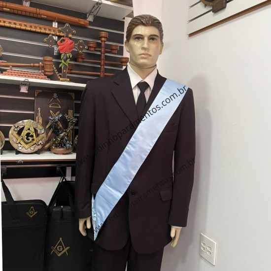 Faixa com uma roseta na ponta e porta espada por trás, confeccionado conforme os preceitos ritualísticos.