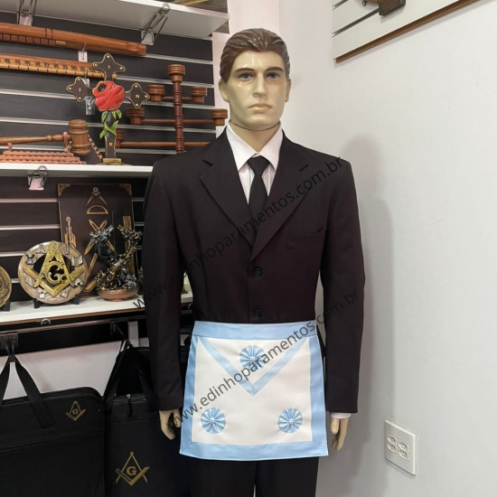 Avental confeccionado conforme os preceitos ritualísticos do Grau de Mestre no Rito Escocês GOB, com elástico preto para melhor ajuste e conforto.