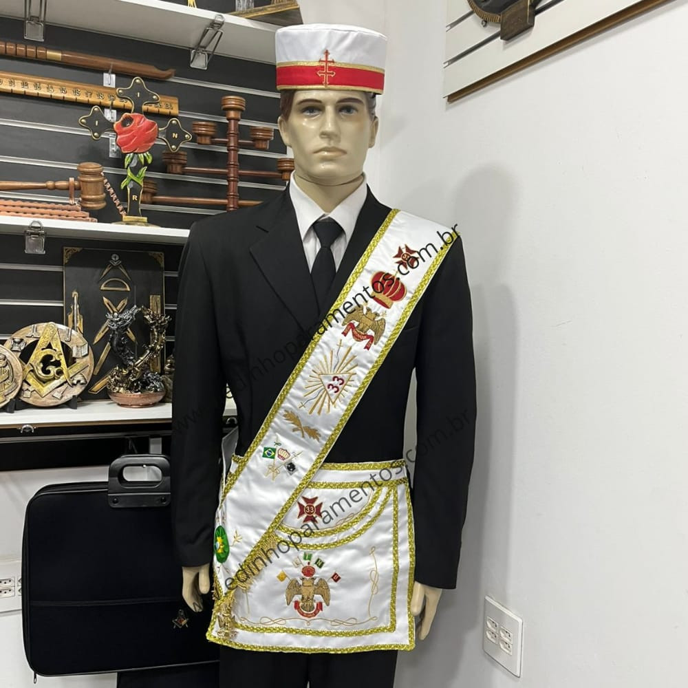 Mais do que um conjunto de peças, este paramento simboliza a progressão no conhecimento e nos valores maçônicos, marcando a transição e a profundidade do aprendizado alcançado no Grau 33. Ideal tanto para uso próprio quanto como presente significativo a um Irmão.