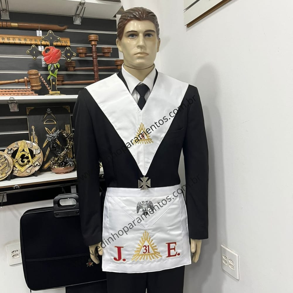 Mais do que um conjunto de peças, este paramento simboliza a progressão no conhecimento e nos valores maçônicos, marcando a transição e a profundidade do aprendizado alcançado no Grau 31. Ideal tanto para uso próprio quanto como presente significativo a um Irmão.