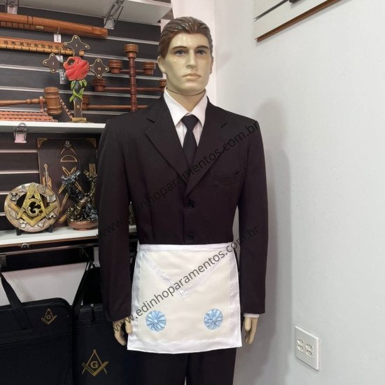 Avental confeccionado conforme os preceitos ritualísticos do Grau de Companheiro Rito York - GOB, com elástico preto para melhor ajuste e conforto.